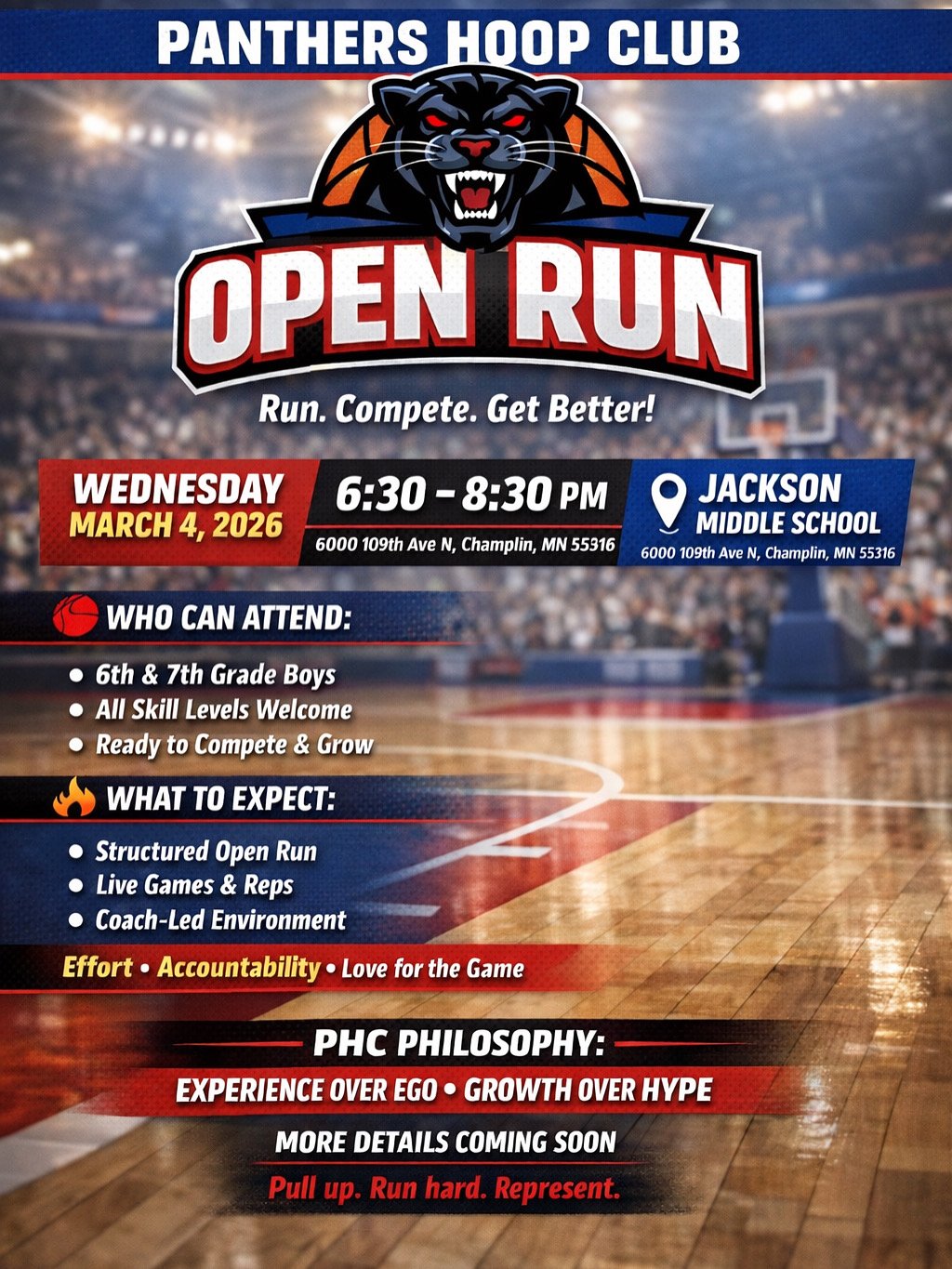 Panthers Hoop Club (PHC) Basketball Program is committed to being more than just a basketball team—we strive to shape and invest in the lives of young boys as they grow into young men. Our mission is to teach life lessons through the game while fostering character, discipline, and teamwork.